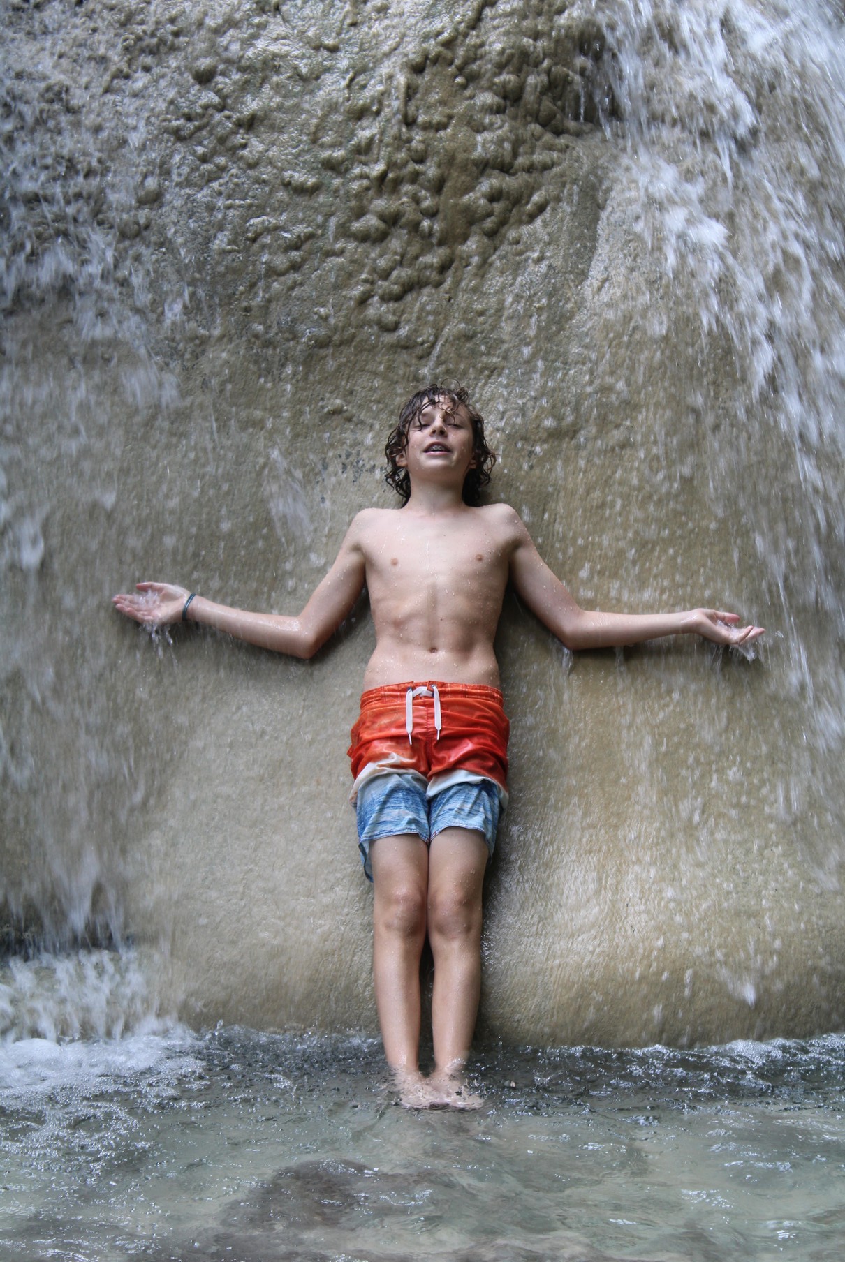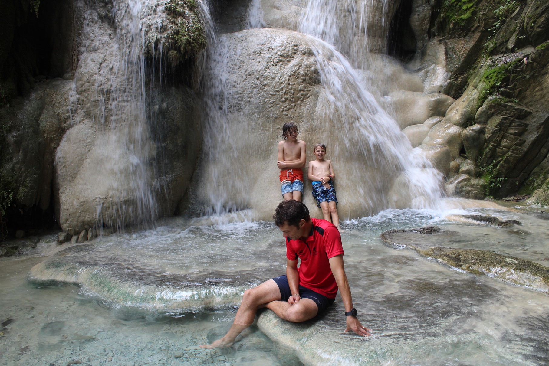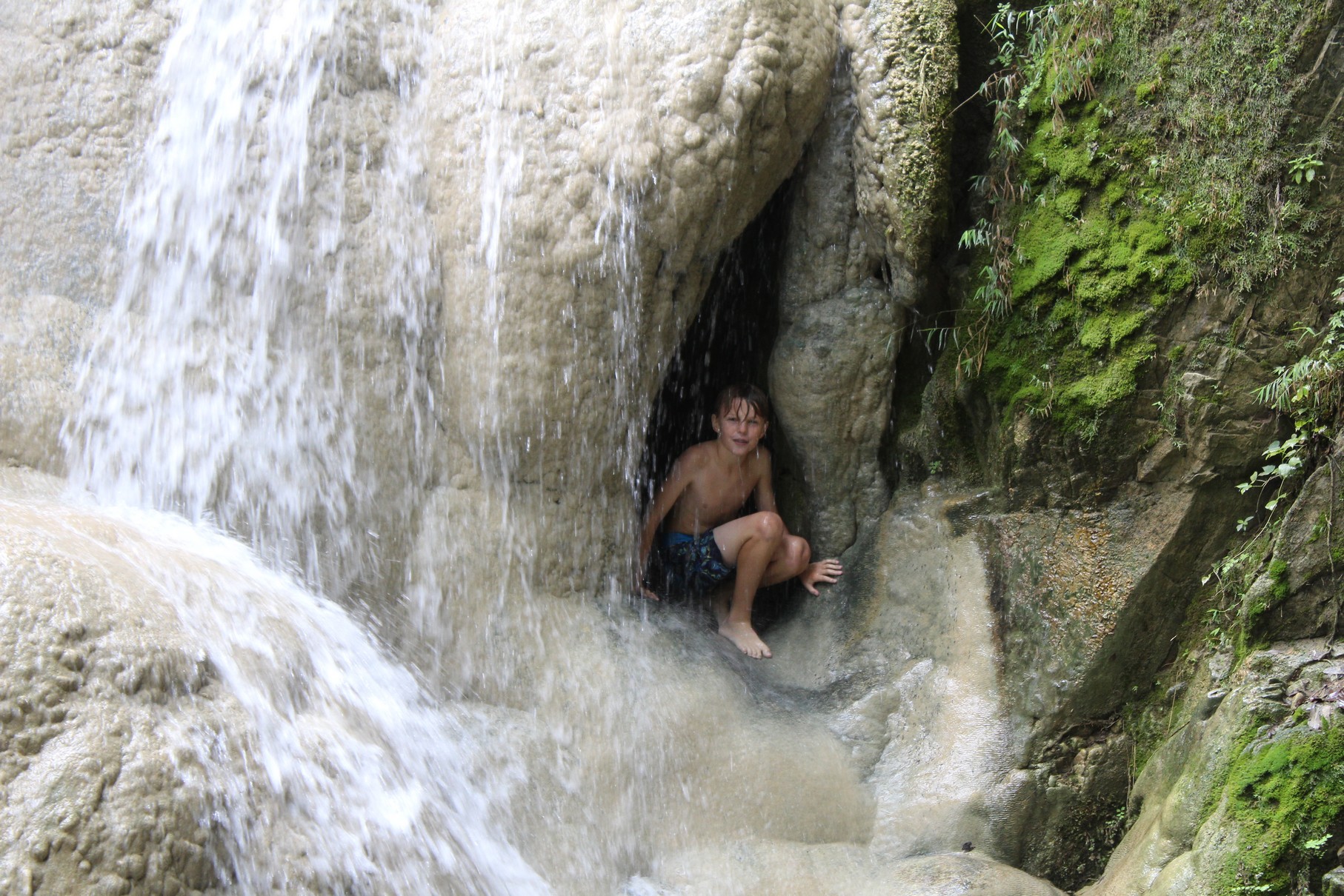 …Et des photos de notre expédition lorsque l’averse nous est tombée dessus. On a bien rigolé! Les torrents se sont remplis en quelques minutes. Un monsieur qui passait par là nous a gentiment proposé des sacs poubelle pour nous protéger.