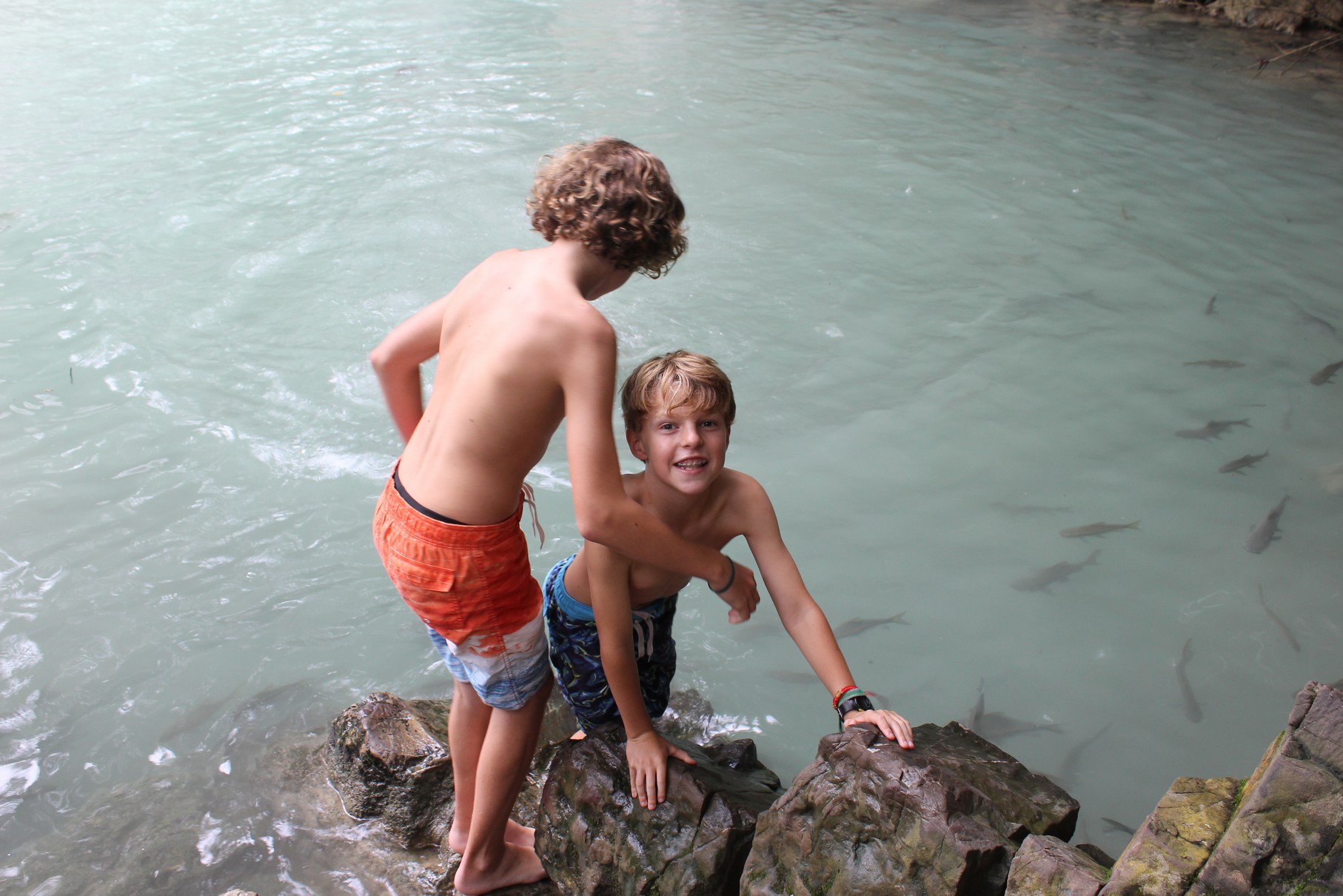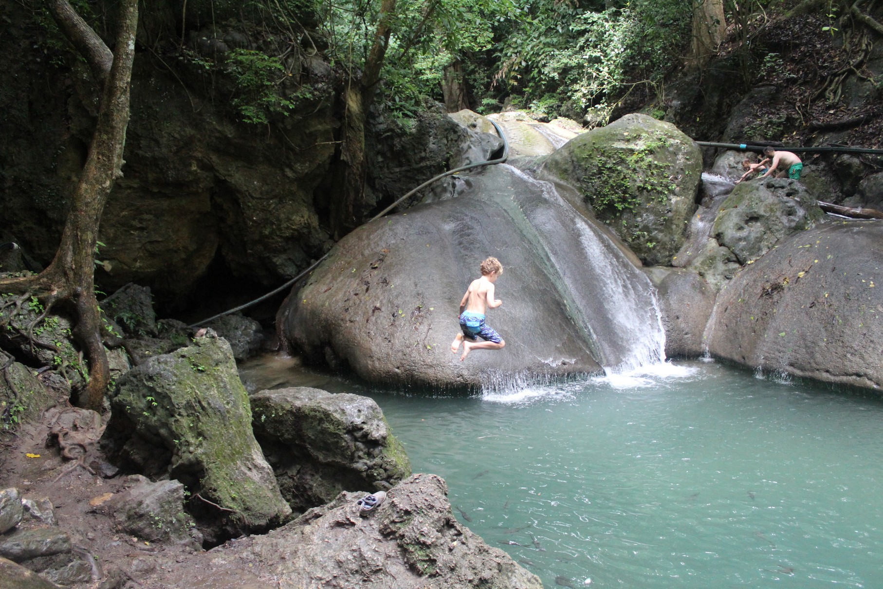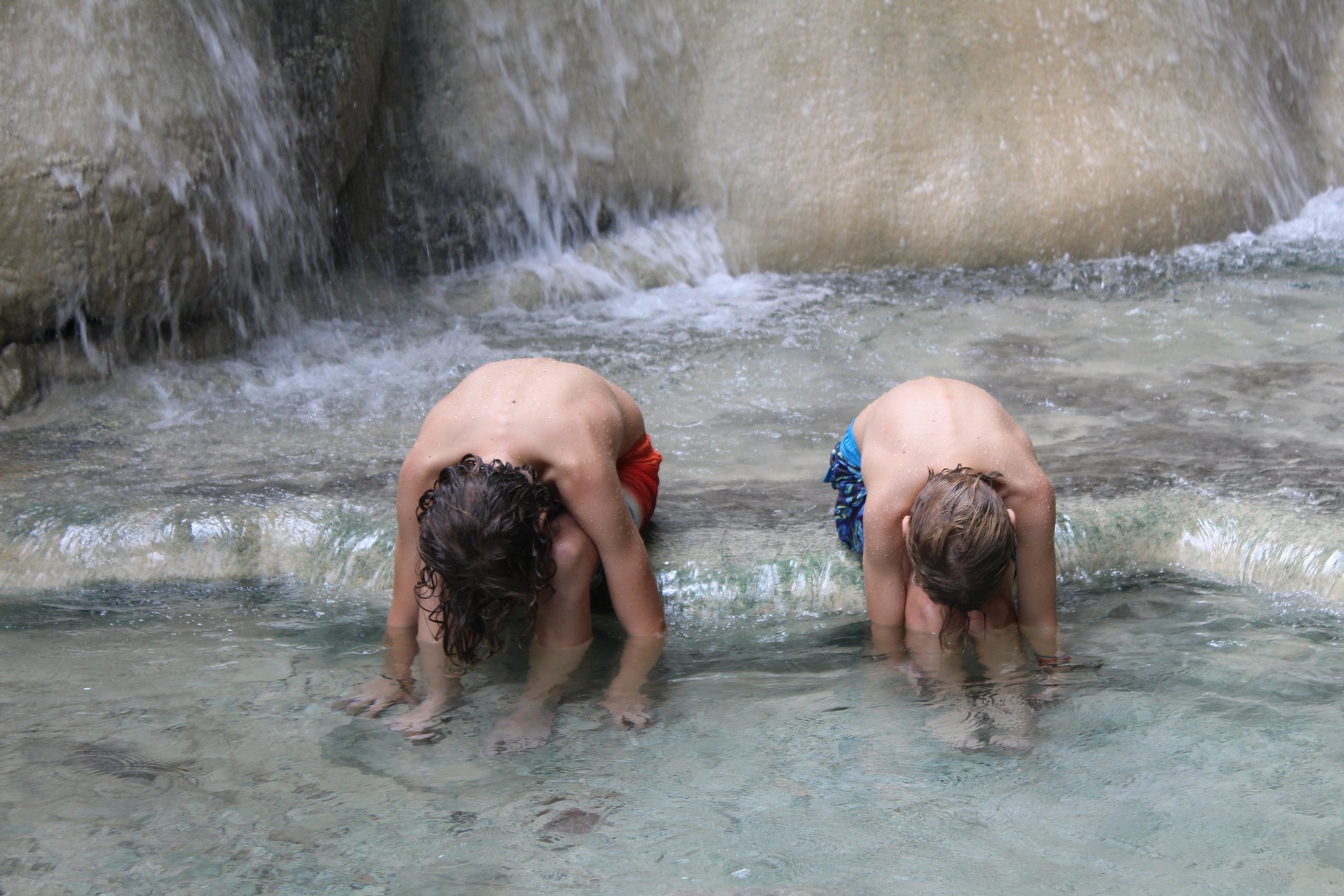 …Et des photos de notre expédition lorsque l’averse nous est tombée dessus. On a bien rigolé! Les torrents se sont remplis en quelques minutes. Un monsieur qui passait par là nous a gentiment proposé des sacs poubelle pour nous protéger.